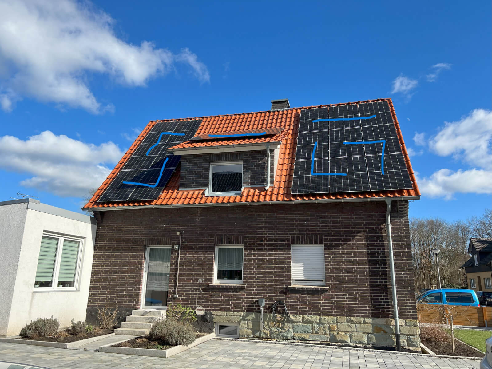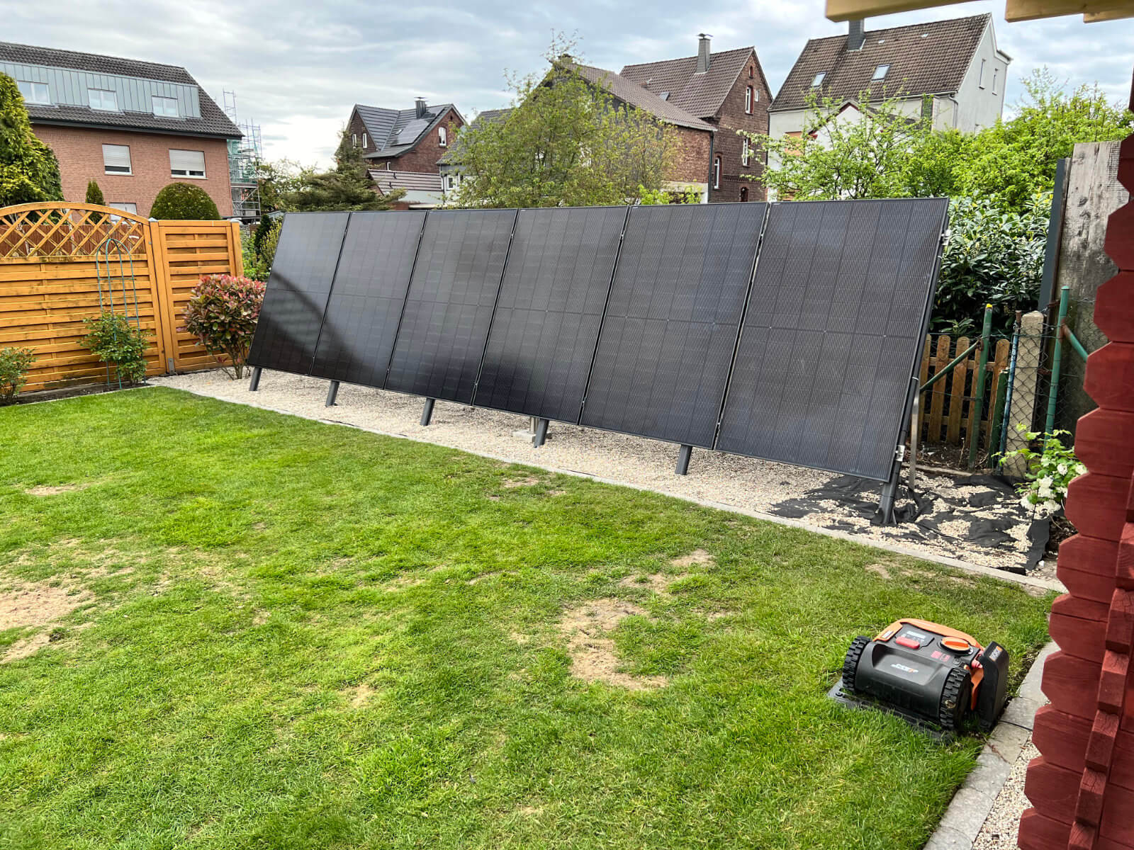 14 x 450 Watt Bifaciale Glas/Glas Module von DNS Sale in Datteln (80 Euro pro Stück). Angeschlossen mit vier Hoymiles HMT 2000-4T (dreiphasig) Mikrowechselrichter.